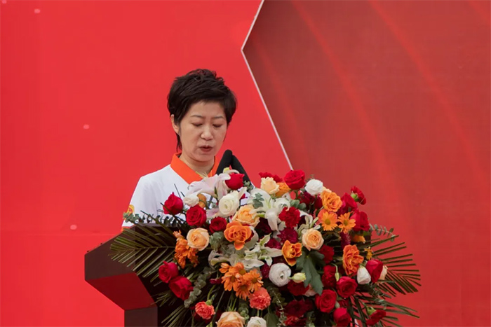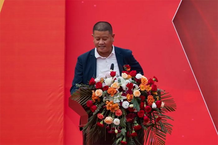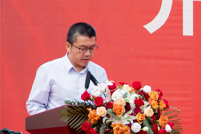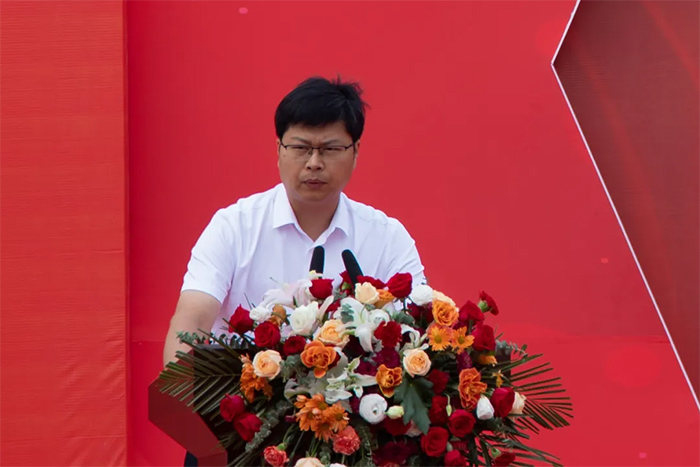 鶴壁百順源食品有限公司項目負責人秦興俊致辭,5個月18天,我們齊心協力完成了總部交給我們的艱巨任務。一號車間項目的投產只是開始,是新的起點,接下來日子里,我將繼續帶領團隊,發揚項目建設的奮斗精神,將一切歸零,堅持不懈的以高標準完成總部下達的生產任務。